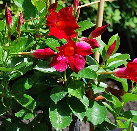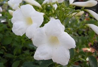 witamy znów w ofercie dzięki Waszej uprzejmości. Roślina w typie datury lecz ma ładniejsze, błyszczące liście. Polecam gorąco dla właścicieli dużych tarasów! Chociaż... mam mały balkon, który w tym roku z powodu częstych wyjazdów dekoruje tylko solandra. Właśnie wyprowadziłam ją na drzewko i wystarczy na cały balkon. W tym roku wiotkie ubiegłoroczne długopędy okręciłam poprzecznie między szczebelkami i mam z balkonu zieloną gondolę.